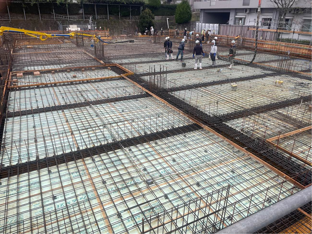 いよいよ1階の躯体工事が本格化してきました。 B1階および1階床のコンクリート打設が無事に完了し、現在は1階の型枠建て込みと壁の配筋作業が進んでいます。 今回の建物は間仕切り壁のほとんどがコンクリートとなるため、型枠や鉄筋の材料が非常に多く、これまで広く感じていた現場も、一時は材料置き場に悩むほどの状態に。 そんな中でも、職人さん同士が協力し合い、材料の搬入タイミングや置き場、作業スペースの確保について話し合い、作業はとてもスムーズに進んでいます。 限られたスペースを協力してコンパクトに整理整頓しながら進める姿が、現場全体の士気を高めているように感じます。 なお、次回のコンクリート打設は2回に分けて打設するため、しっかりと打ち継ぎ部の処理も行い、次回の作業に備えています。 次回の1階コンクリート打設は12月2日と4日を予定しています。 これからますます寒くなる時期ではありますが、安全第一で、引き続き丁寧な施工を進めてまいります!