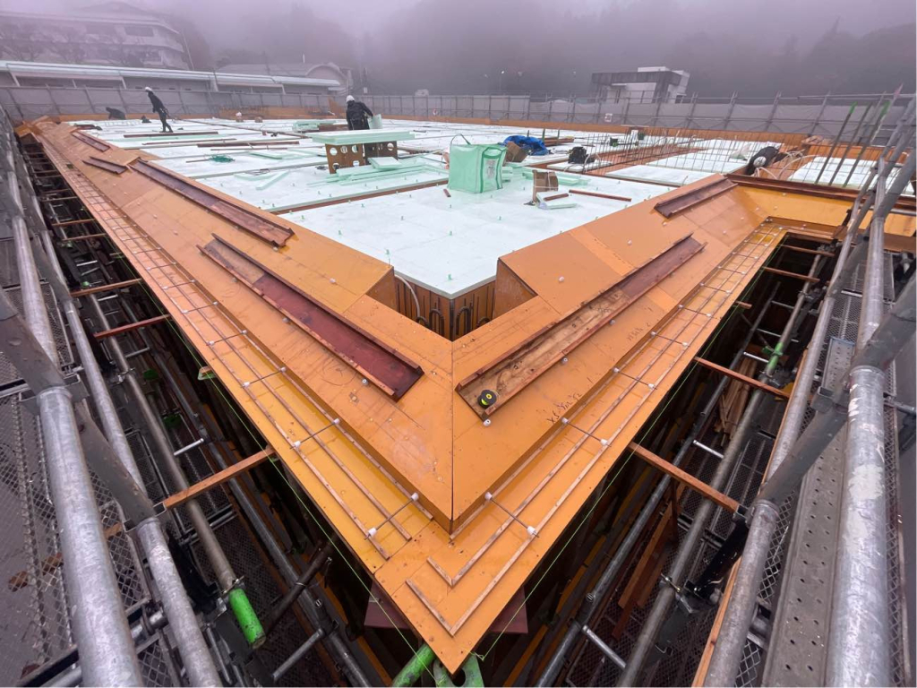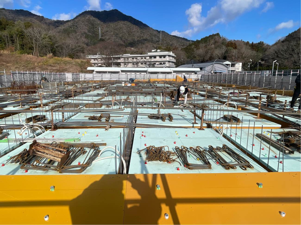 今回も、見真学園成人男子寮の増築工事の現場から、最新の進捗状況をお届けします。 12月4日に1階のコンクリート打設が無事完了し、翌12月5日からは2階型枠の建て込み作業へと進みました。 そして現在は、最上階となる「R階」の梁配筋作業を行っております。 年明けも現場は着実に進行しており、次回の大きな工程として、2階のコンクリート打設を1月20・21日に予定しています。 工事もいよいよ中盤から後半へと向かっていく大切な時期を迎えています。 ❄ 朝の冷え込みに要注意!🥶 最近は冷え込む日が続き、朝一番のスラブ上が凍結していることもあり、作業員全員で転倒防止に努めています。 スラブ(床面)は高所にあるため、ちょっとした足元の油断が大きな事故につながることも。 現場内では「声かけ・確認・慎重な行動」を合言葉に、安全第一で作業を進めています。 次回は、R階配筋作業の完了や、コンクリート打設に向けた準備の様子などをお届けする予定です。 引き続き、安全作業で頑張ってまいります!