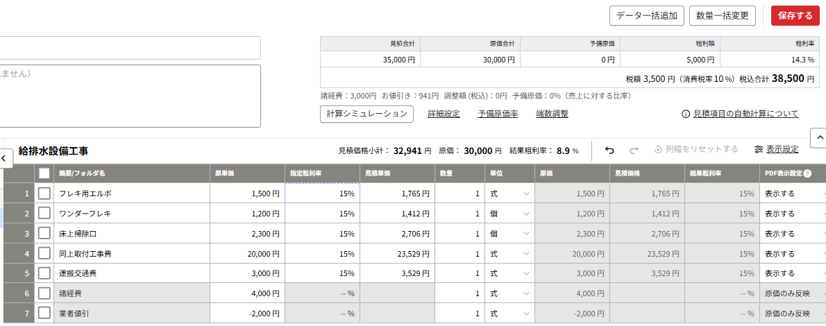 またお客様に出す見積も、税別・税込それぞれで端数調整ができる細やかさもあり、あると嬉しい機能が揃っています。