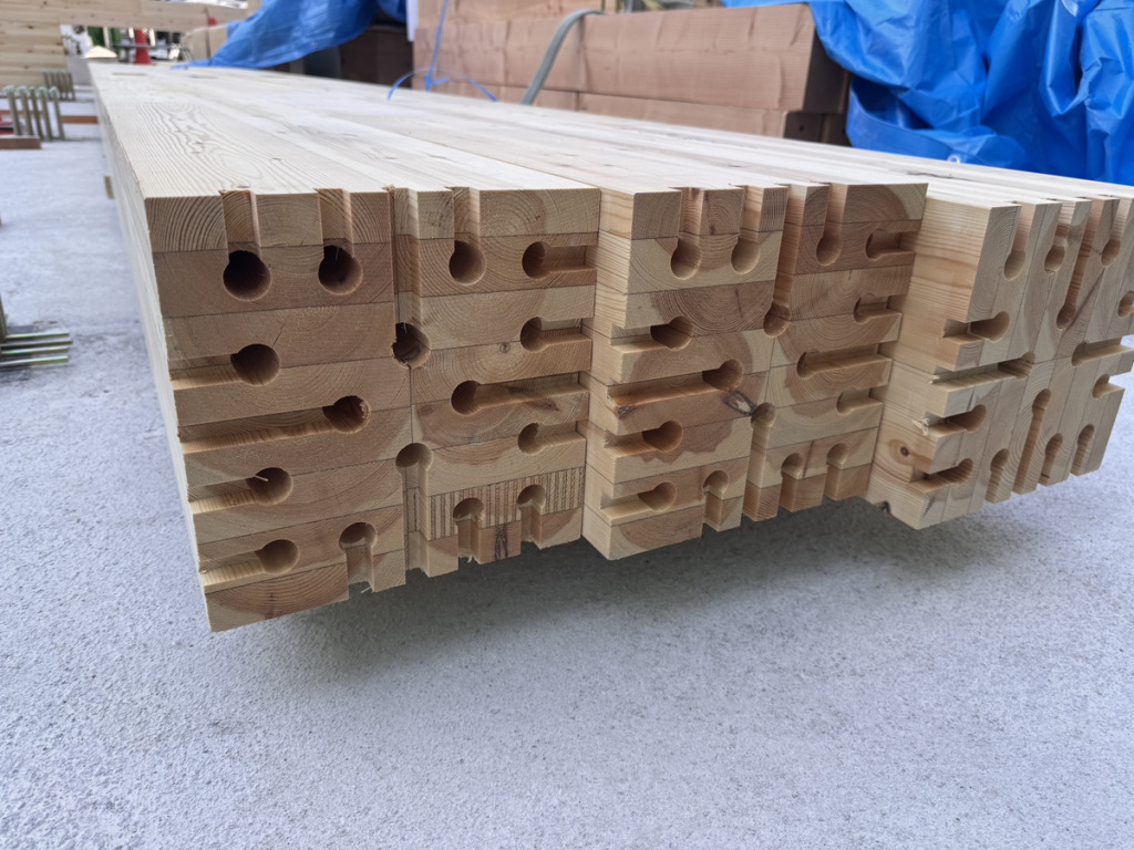 この工法を用いた工事は広島県内でも珍しく、この金物に合わせた木材のプレカットも、県外で行われてから運び込まれたそうです。