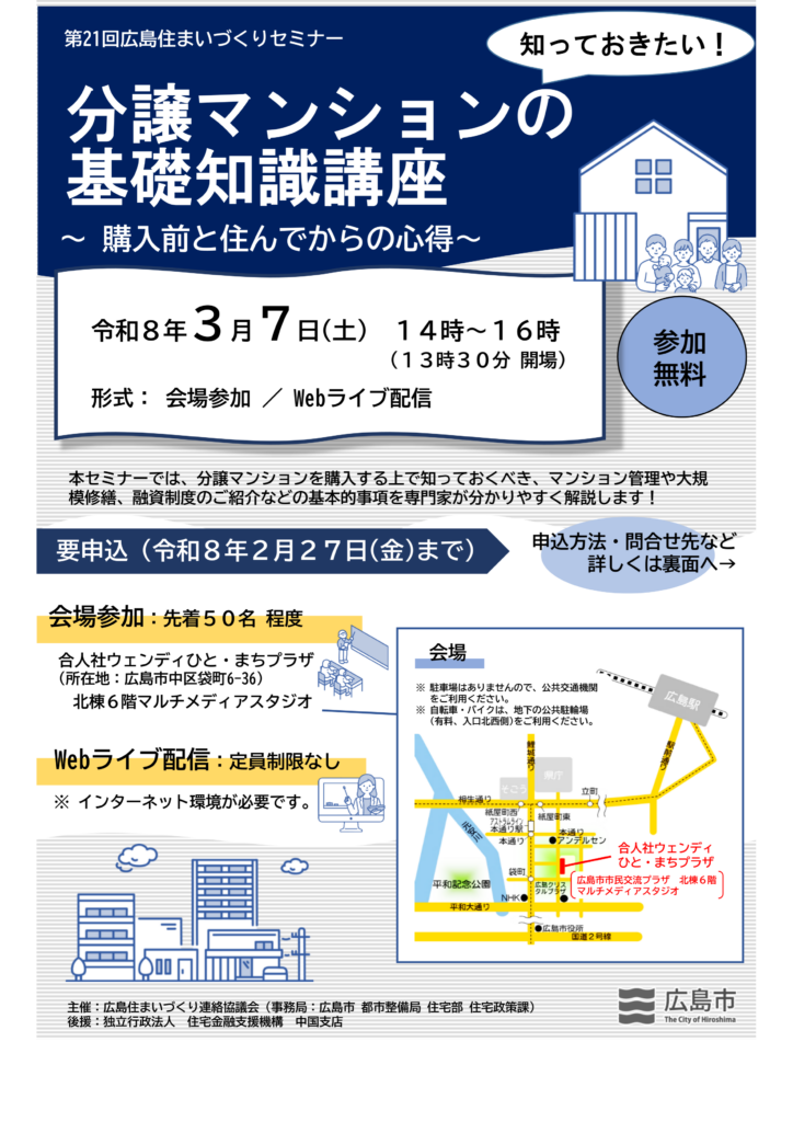 - インターネット:広島市公式サイト内の「広島市 分譲マンションの基礎知識講座」ページより